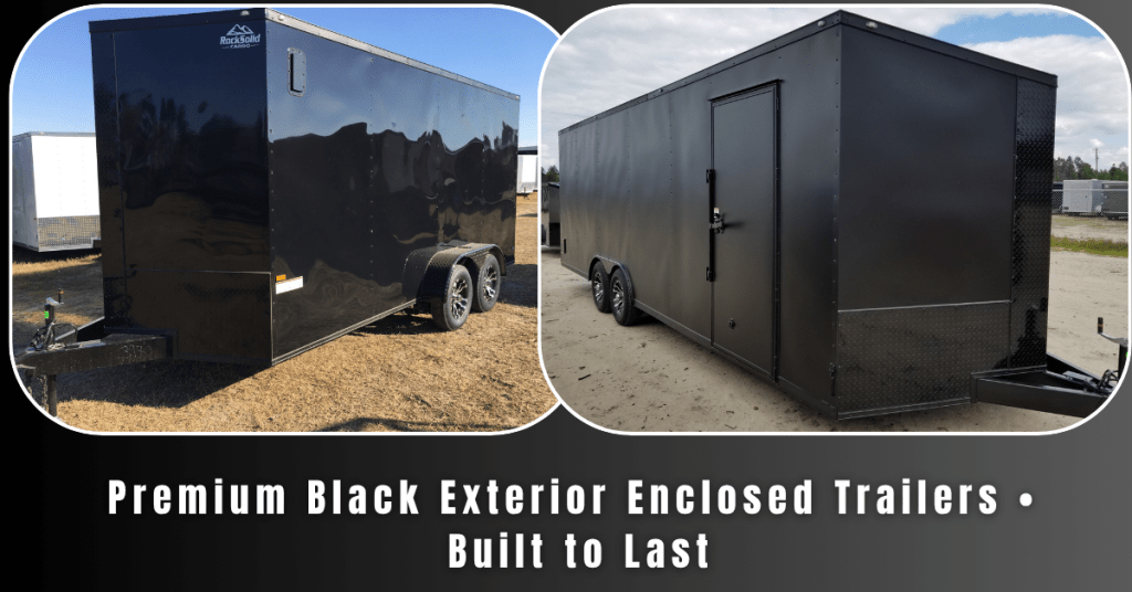 Our first offering as an exclusive dealer is the Rock Solid Cargo black exterior enclosed trailer—a perfect blend of durability, elegance, and rugged design.